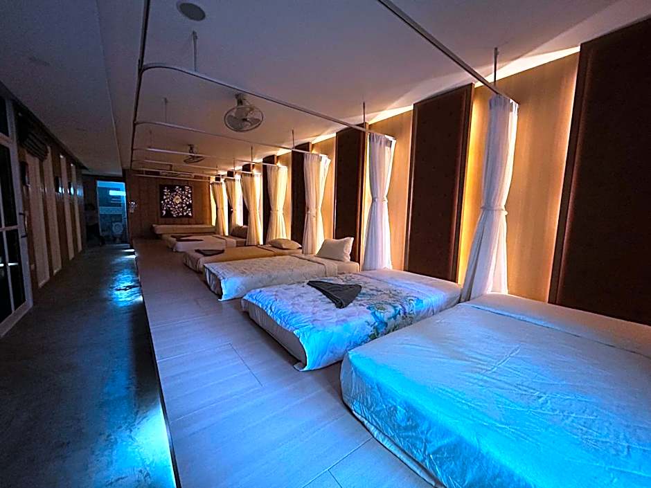 Air conditioning, a seating area and a sofa are provided in this dormitory room. The unit offers 10 beds.